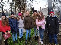 2019. december 9. Kiss Bálint, iskolánk névadója ezen a napon látta meg a napvilágot 1772-ben Vésztõn, de akkoriban még Kis-ként írták a nevét. Ebbõl az alkalomból a 8.b-sek a temetõben lévõ felújított sírnál emlékeztek a névadó iskolaalapító lelkészre. Szunyi Lilla és Vigh Dorina néhány mondatban összefoglalta Kiss Bálint érdemeit, és méltatták máig kiható tetteit. Remzsõ Lara imádságában adott hálát életéért és tevékeny életéért.